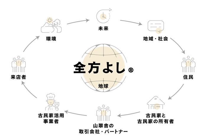 私たちはこの事業を、古民家の「所有者よし」「利用者よし」「事業者よし」「社会よし」の「全方よし」と捉えています。これからも古木を通じ、SDGs達成に寄与する価値を創造し続けて参ります。