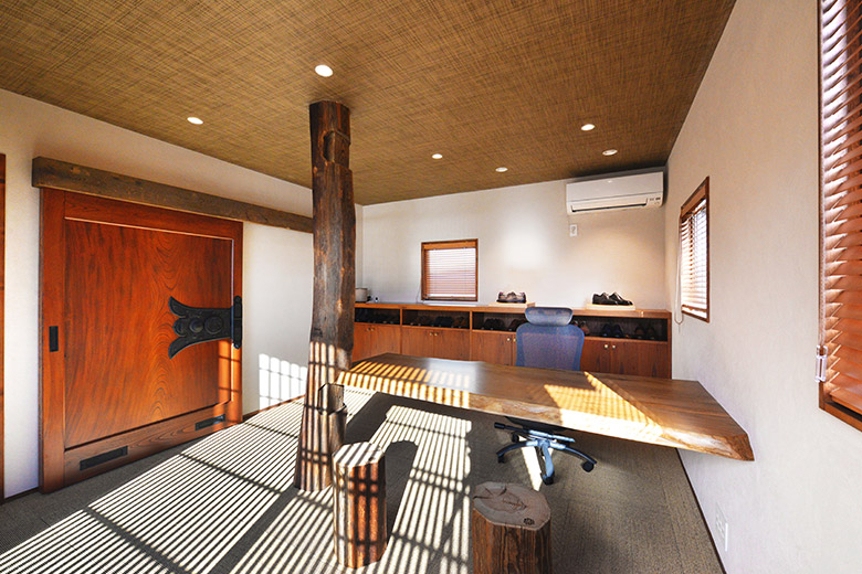 家具や什器のように、オフィスの中でも人が毎日触れる部分には、ぜひ本物の素材、自然材としての木を使ってみてはいかがでしょうか。既製品ではなく、用途や狙いにあったオーダーメイドでの什器製作を承ります。古木を活用したスツールなど、付加価値の高い備品製作も可能です(🔗古木オリジナル家具)。